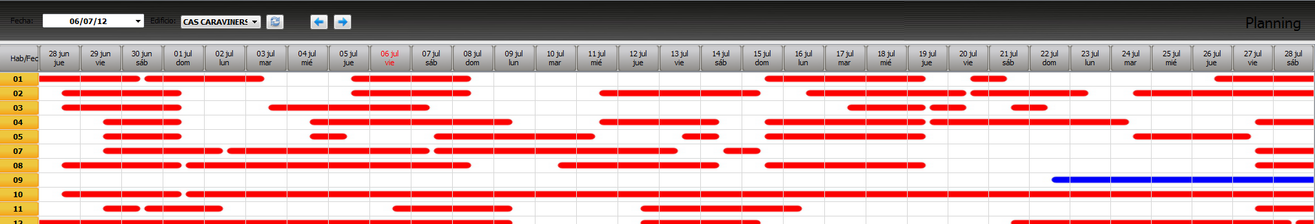 Es posible trabajar con el control rejilla una matriz de 16 habitaciones vertical y cinco dias en horizontal donde se muestra el status de cada habitacion (en cierto color) durante los siguientes cinco dias a partir de una fecha.