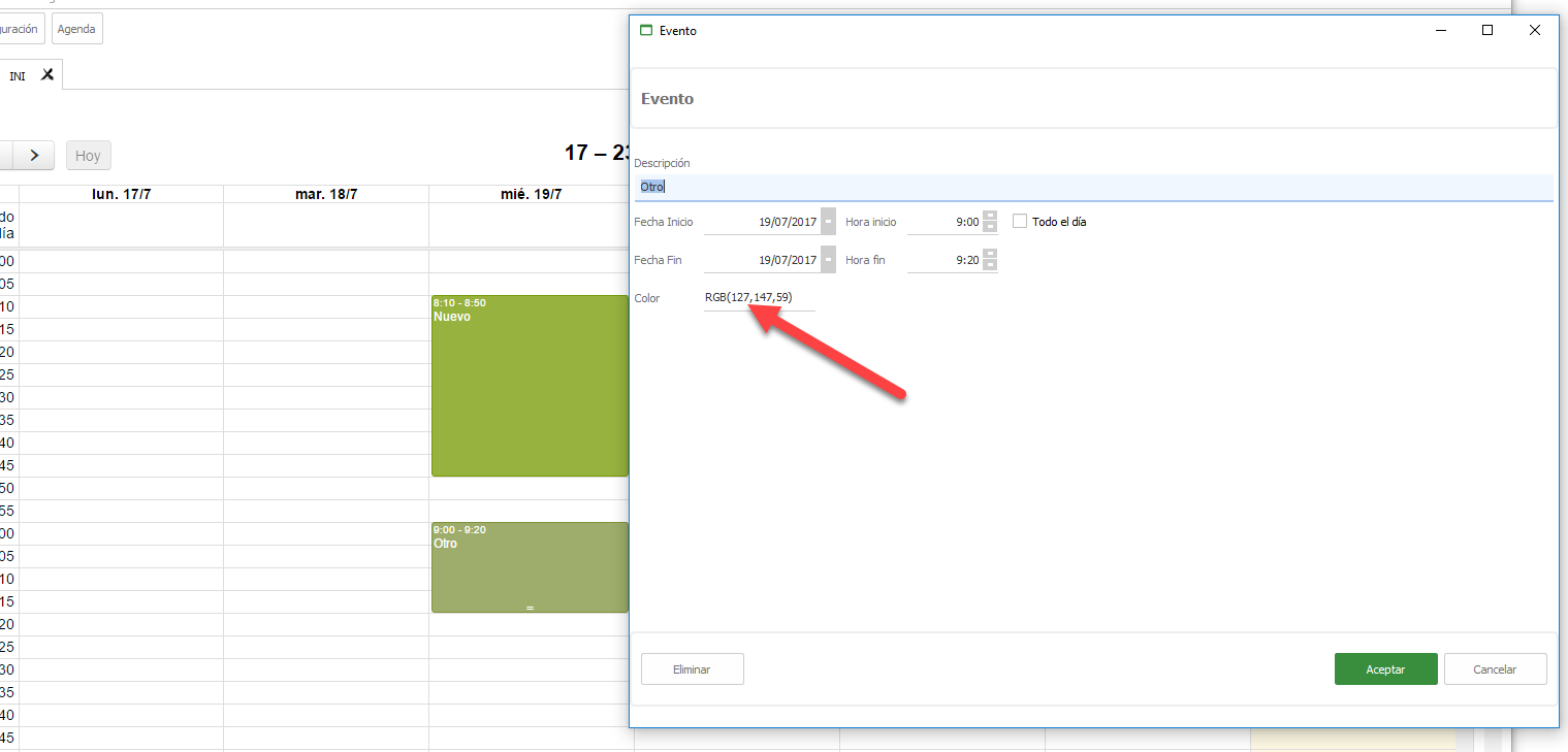 Luis mira en los ejemplos de Paco Satue, allí tienes un ejemplo de agenda, que funciona bien.